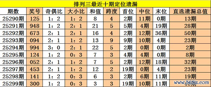 开奖总结:罗列三第2025299期奖号:300,定位直选遗漏值19期、10期、11期,遗漏总值为40期。